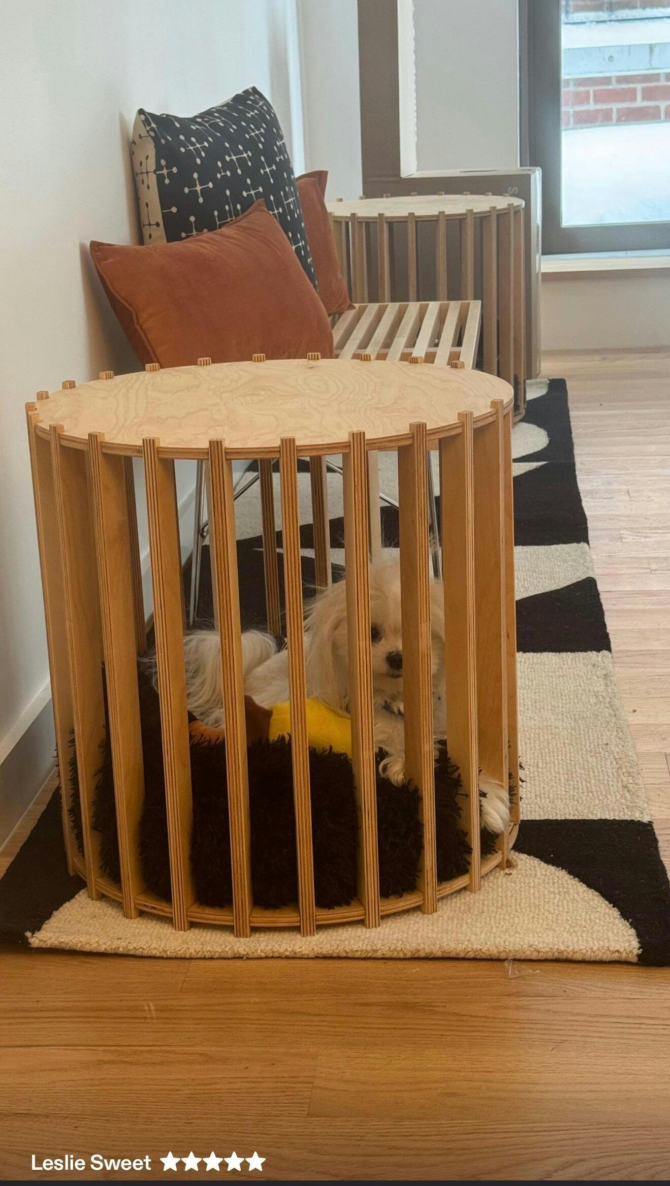 With its smooth light wood finish and durable table top, this design is perfect for apartments or modern interiors. The crate functions as both a dog table kennel and a cozy indoor resting spot for your pet, making it a unique alternative to traditional furniture-style dog crates.